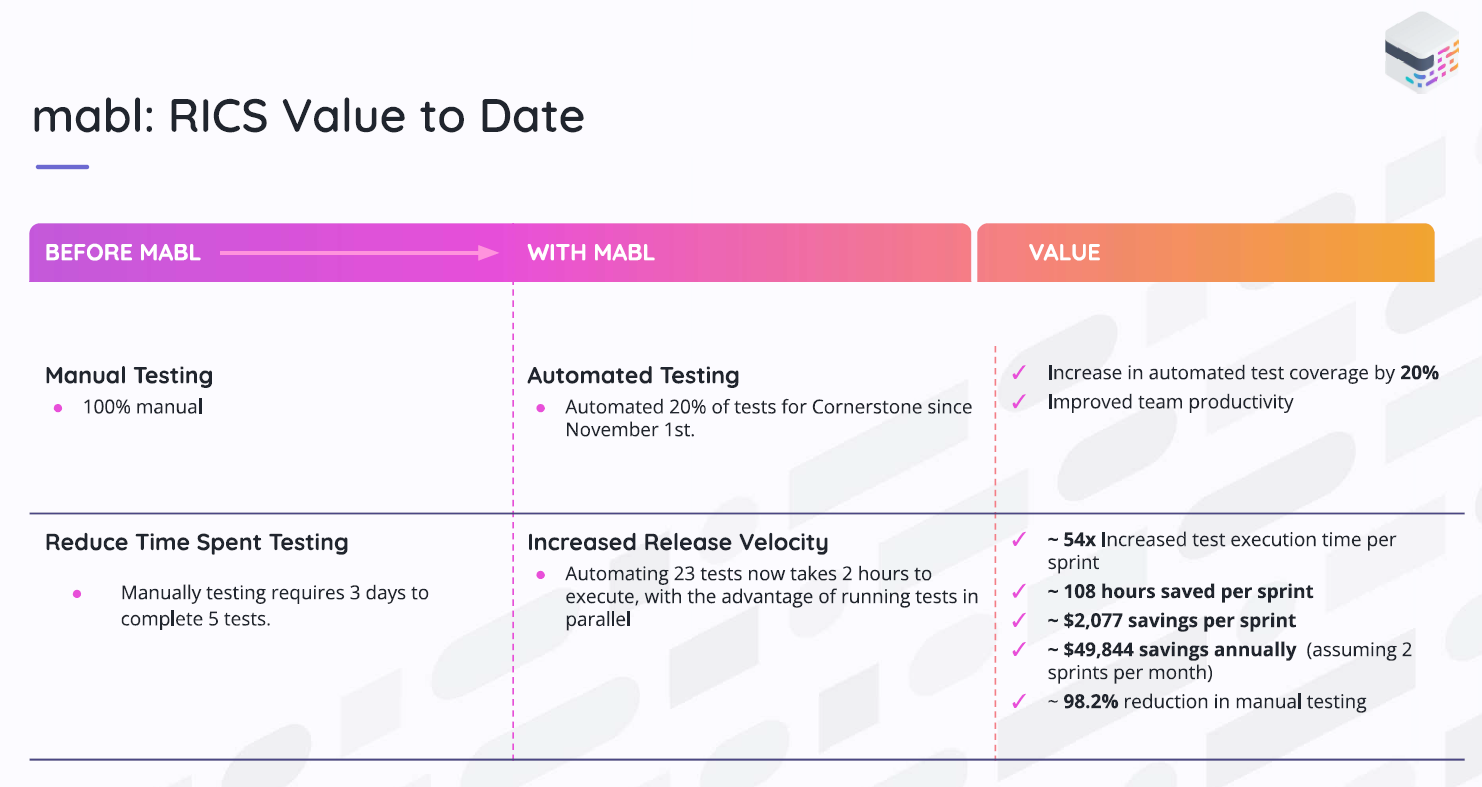Adopting mabl has been a key milestone in our quality assurance transformation. It has helped RICS: